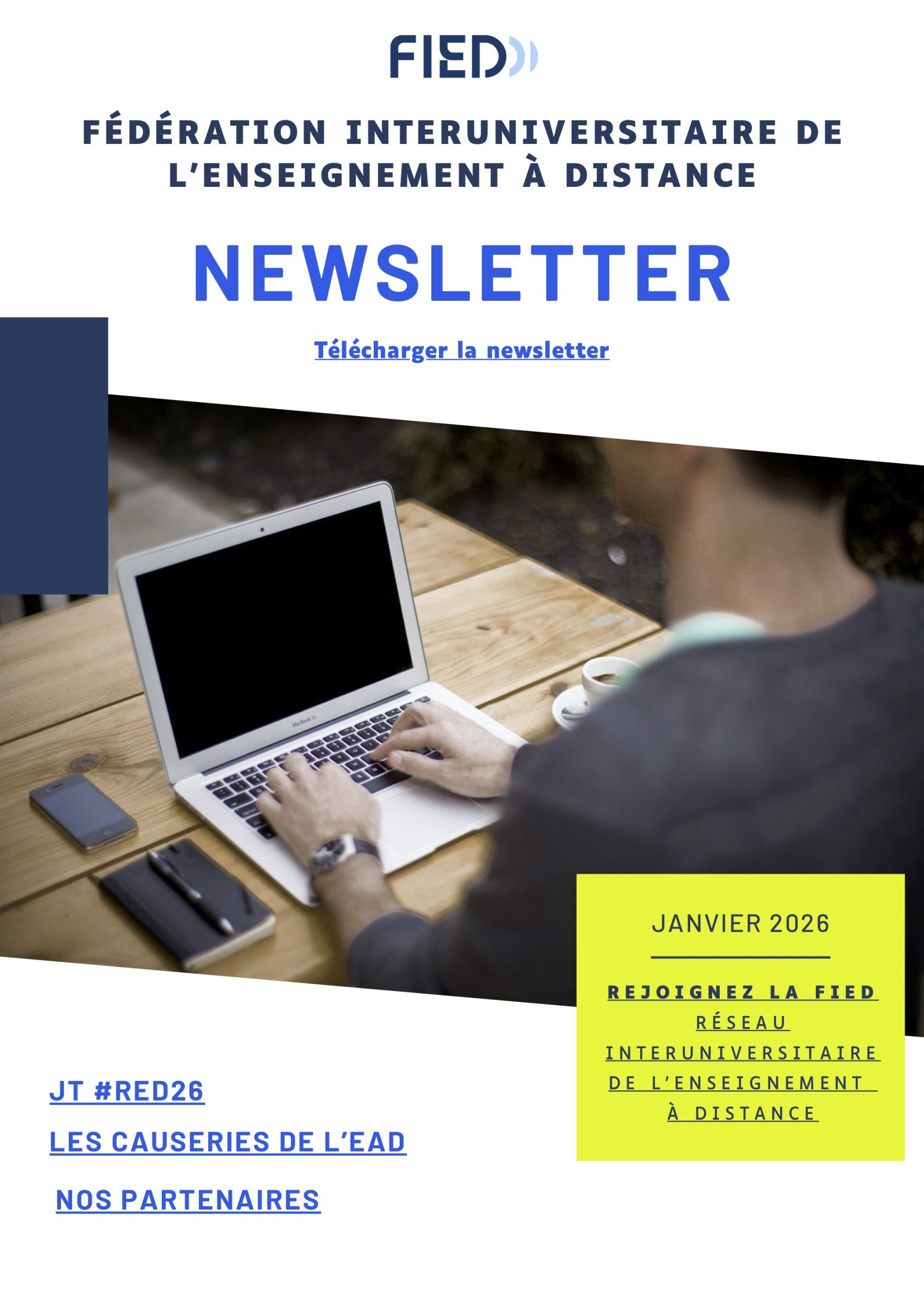 Fédération Interuniversitaire de l’Enseignement à Distance depuis 1987, la FIED rassemble les universités proposant des formations diplômantes en ligne. La FIED affirme son identité et redéfinit ses missions dans un contexte qui a radicalement évolué depuis sa fondation. Les évolutions technologiques et la crise sanitaire ont accéléré la transformation numérique de l’enseignement supérieur. La FIED est riche de l’expertise scientifique et de terrain de ses membres au service des différents publics de l’enseignement supérieur à distance ou hybride. La FIED soutient le développement d’une université inclusive et la formation tout au long de la vie.